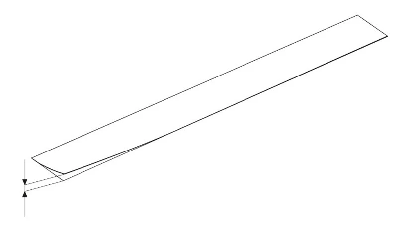 A lamella végei közötti eltérés mértéke. A mérést a lamella végleges (vízszintes) helyzetében kell elvégezni.