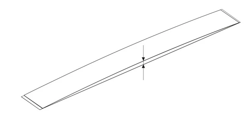 Az L hosszúságú lamella élének eltérése egy sík felülethez viszonyítva.