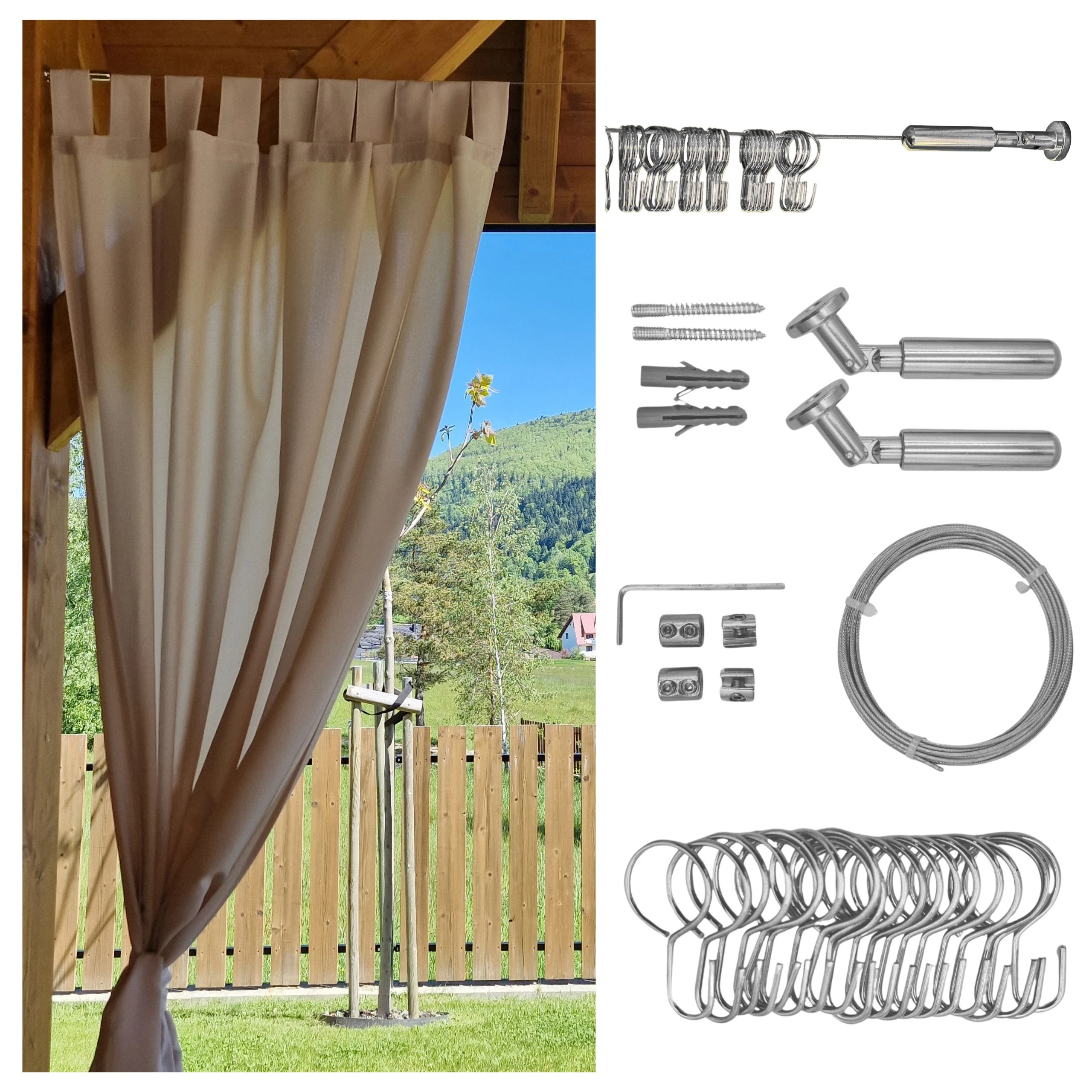 - Zsinóros karnis egy praktikus megoldas teraszra, pavilonba vagy kertbe. Ennek segítségével könnyen felfüggesztheti a függönyöket, sötétítőket vagy girlandokat